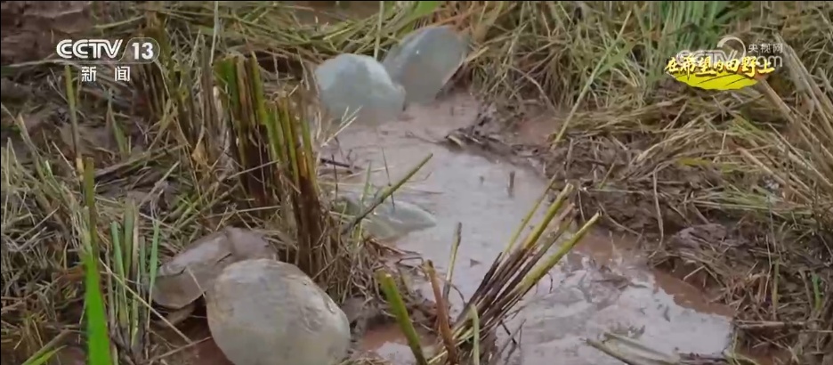 在四川成都市金堂县竹篙镇的农田里,沉甸甸的稻穗压弯枝头,收割机按照规划好的路线完成收割。收割完成后的稻田里,一只只甲鱼映入眼帘。据了解,今年竹篙镇建设了500亩稻鳖综合种养示范田,养殖的甲鱼能为水稻松土、除虫,排泄物还可作为天然肥料,实现“一水两用、一田双收”的高效农业目标。