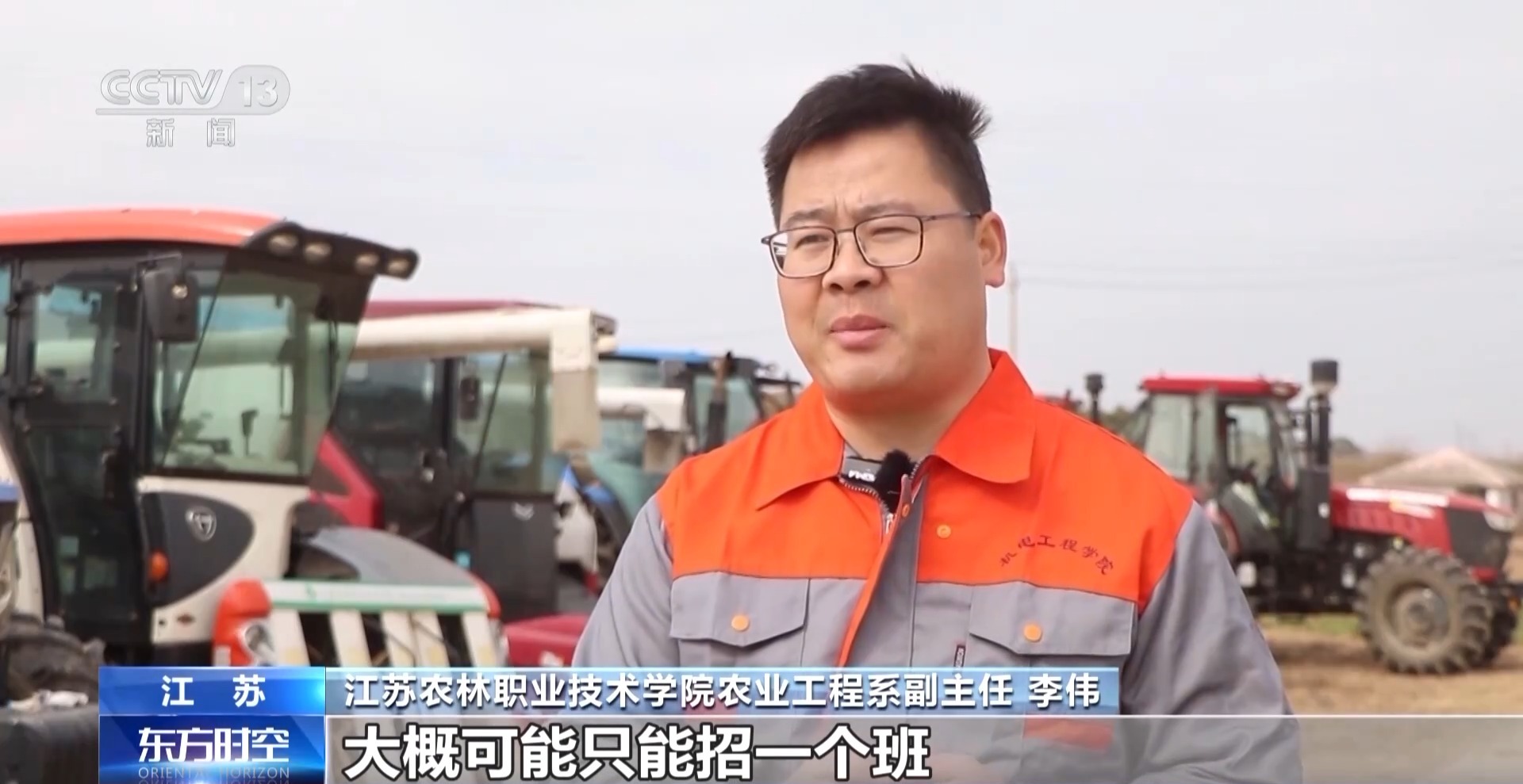 江苏农林职业技术学院农业工程系副主任 李伟:像我们2018年之前,大概可能只能招一个班,大概十几个人左右。可能大家对我们农机来讲有一种偏见,但是其实农机它跟汽车一样,也在往高端化、智能化、绿色化转型升级。