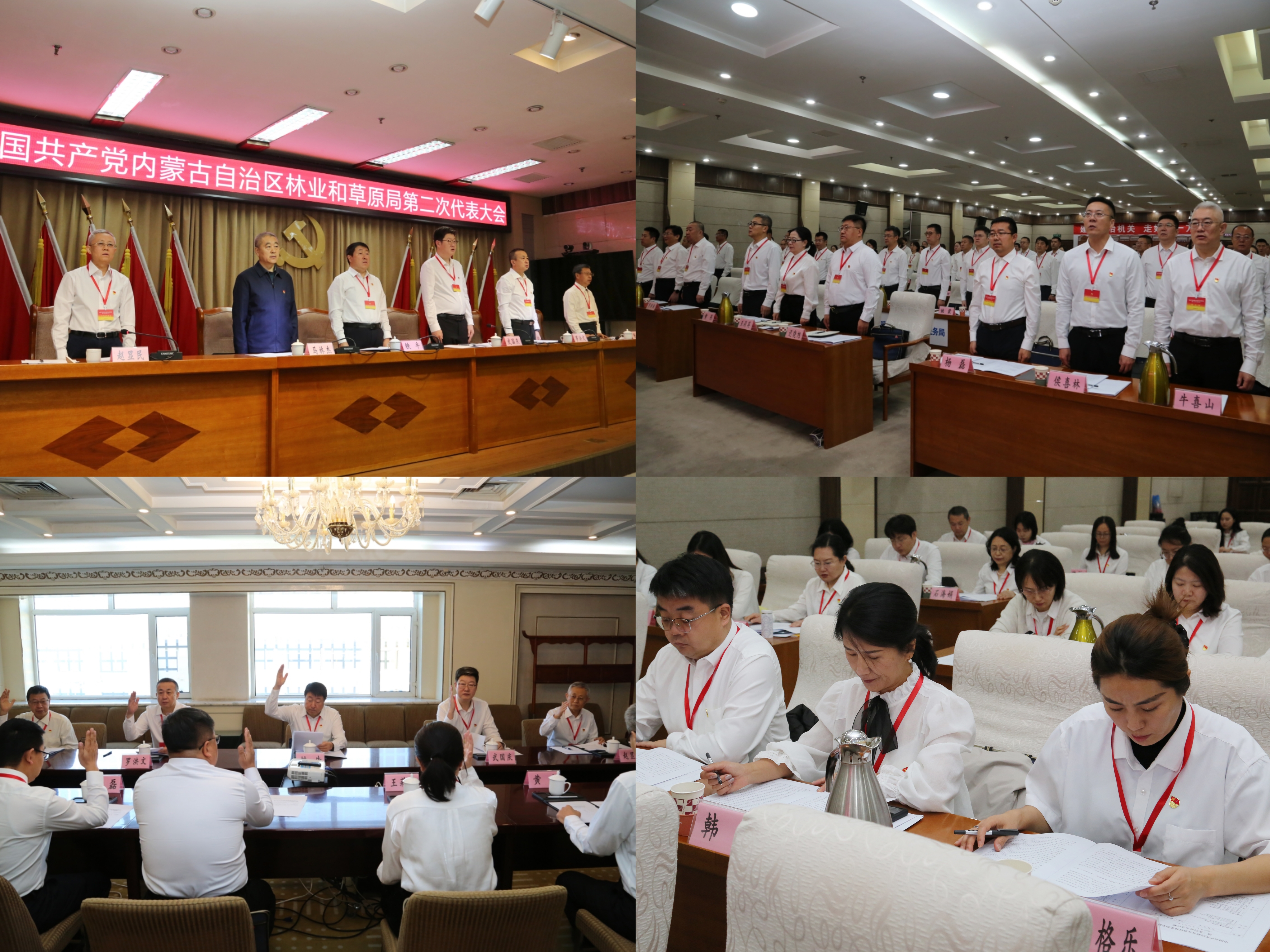 朗读中国内蒙古自治区林业和草原局第二次党员代表大会胜利召开, 11月25日,中国内蒙古自治区林业和草原局第二次党员代表大会隆重召开。局系统104名党员代表出席会议,自然资源厅派驻纪检组到会指导。大会在庄严的国歌声中拉开序幕。武国庆同志代表第一届机关党委作工作报告。报告说明,五年来局机关党委始终以习新时代中国特色社会主义思想为指导,深入践行习生态文明思想,在强化政治建设、深化理论武装、夯实基层基础、推进正风肃纪等方面取得很明显的成效,通过党建与业务深层次地融合,扎实推进林草资源保护、生态修复、林长制落地、防灾减灾等重点工作,为筑牢区域生态安全屏障、推动绿色发展注入强劲动力。报告提出,今后五年的奋斗目标是:高举中国特色社会主义伟大旗帜,以习新时代中国特色社会主义思想为指导,深入贯彻党的二十大及二十届历次全会精神,坚决扛起维护国家生态安全政治责任,以“守正创新、实干担当”为总基调,着力加强政治建设、深化理论武装、建强战斗堡垒、推进正风肃纪。建设高素质林草人才队伍,推动林草事业高水平发展实现新突破。大会严格遵循《中国章程》和《中国基层组织选举工作条例》规定,审议通过了选举办法、监票人及计票人名单,以无记名差额投票方式,选举产生了机关第二届党委委员和纪委委员。随后,新一届机关党委、机关纪委分别召开第一次全员会议,选举产生了机关党委书记、专职副书记和纪委书记。大会号召,全局各级党组织和全体党员要更加紧密地团结在以习同志为核心的党中央周围,在自治区党委的坚强领导下,以“赶考的心态、奔跑的状态、实干的姿态”践行初心使命,锐意进取、攻坚克难,让党建红与生态绿交相辉映,厚植北疆生态屏障,赋能绿色生态发展。